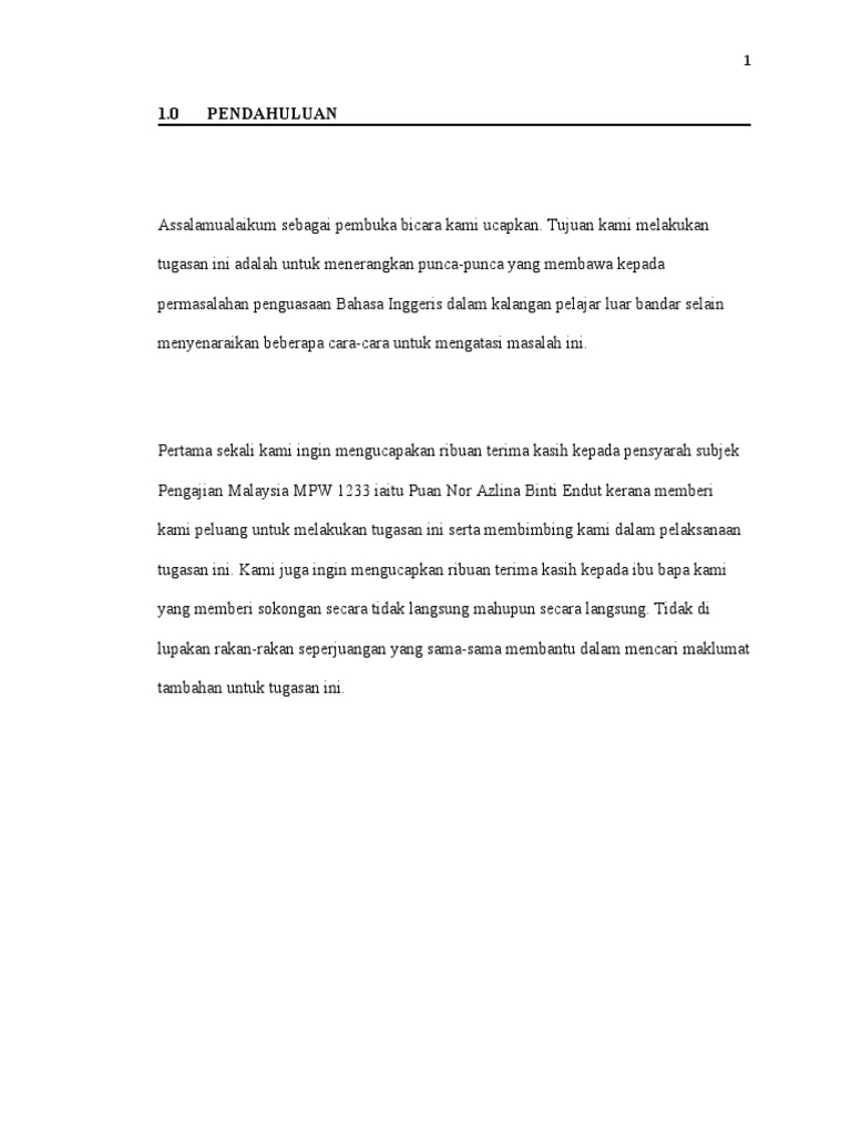 Punca Pelajar Lemah Dalam Bahasa Inggeris D Pdf kamponginggeris. Pelajar- pelajar juga mempunyai sifat malu untuk bertutur dalam bahasa Inggeris. Latih tubi ini mengandungi 20 soalan.