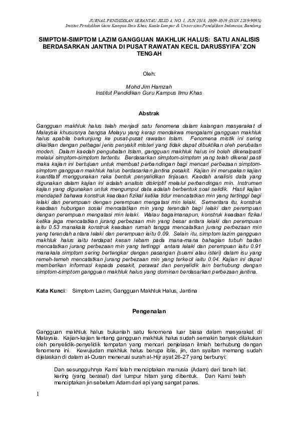 Kadang menangis dan kadang ketawa ketika tidur 5. Kerap ternampak seperti bayangan hitam berdiri kerap ternampak bayangan hitam atau putih melintas laju kerap ternampak seolah anak kecil berlari. Kerap mimpi bersetubuh merupakan masalah yang sering dihadapi oleh pesakit yang mengalami gangguan makhluk halus.